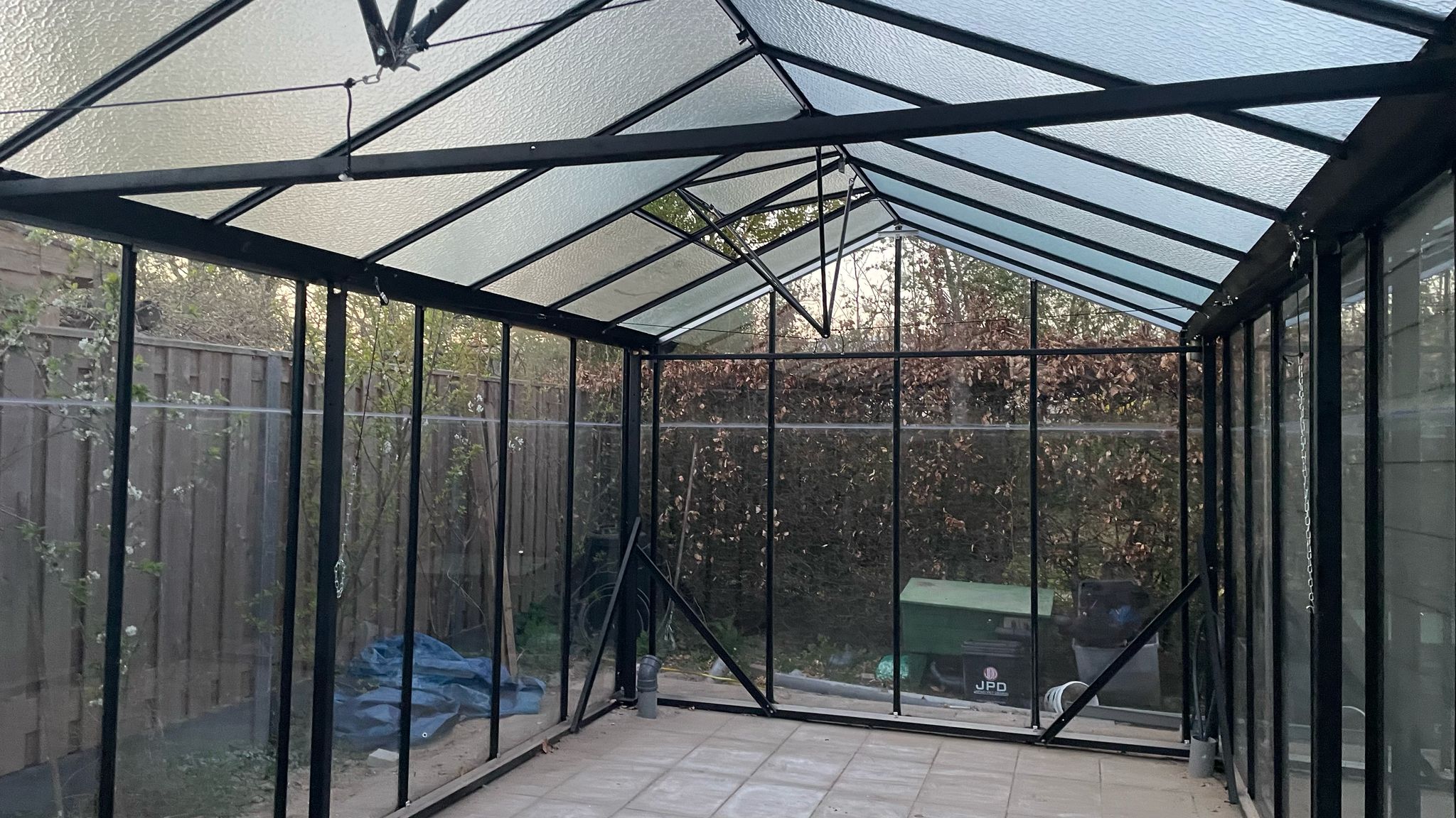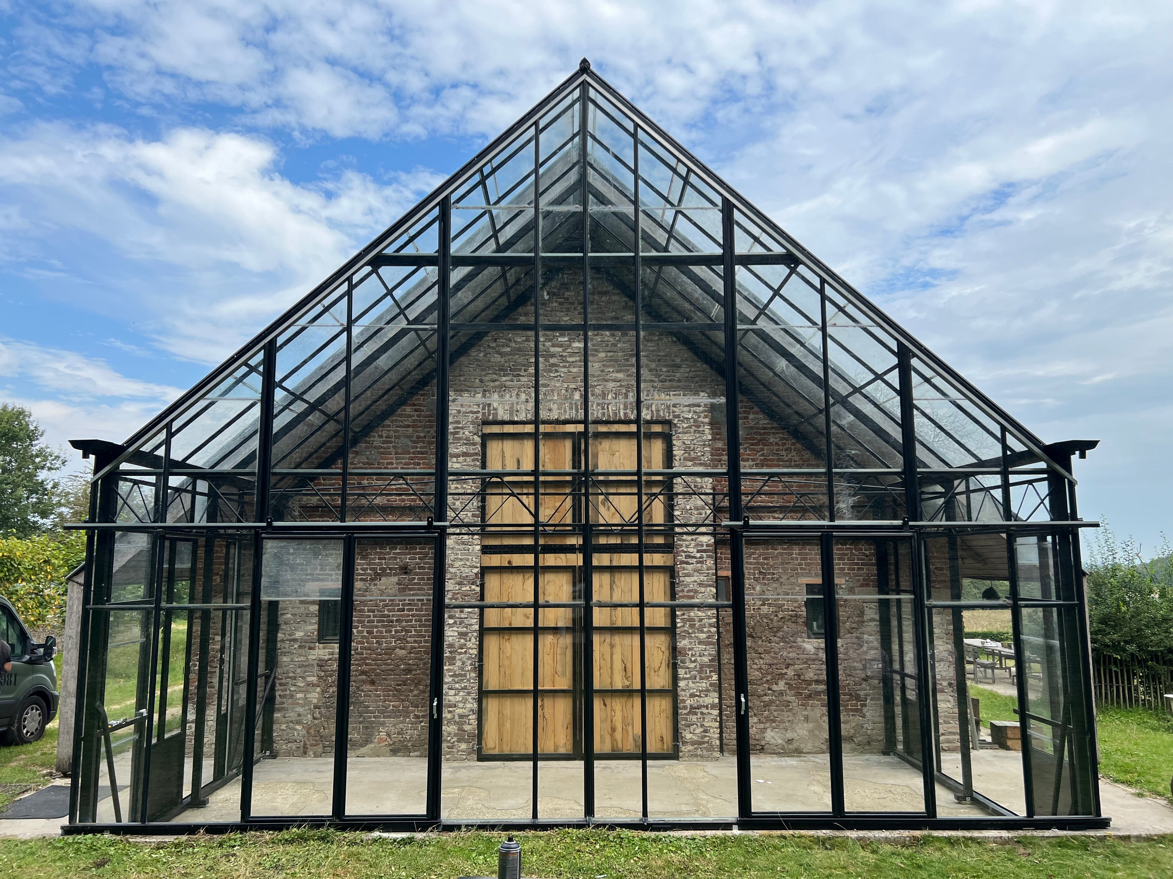 Onze kassen zijn gemaakt van gerecyclede materialen van grote tuinbouw kassen. zowel de metalen profielen, als het glas wordt herbruikt. Onze kassen zijn stormvast.